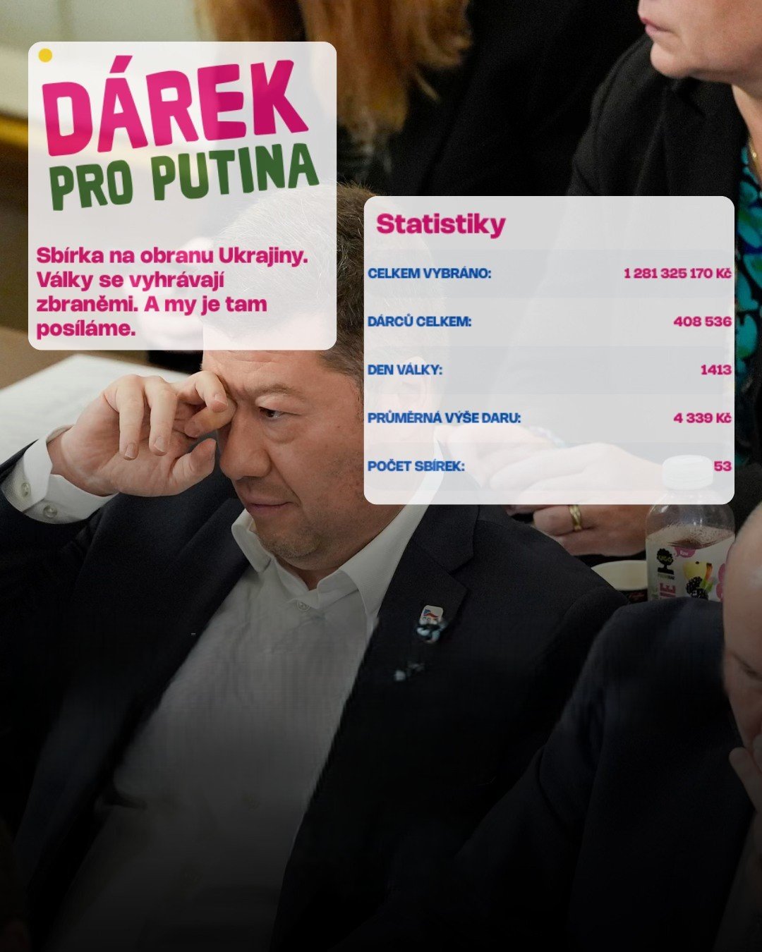 Protiukrajinská prohlášení předsedy Poslanecké sněmovny Tomia Okamury v jeho novoročním projevu výrazně navýšila dary českých občanů na zbraně pro ukrajinskou armádu. Novinkám to sdělil Martin Ondráček, spoluzakladatel české iniciativy Dárek pro Putina, která od začátku plnohodnotné ruské agresivní války proti Ukrajině zřizuje sbírky na zbraně pro ukrajinskou armádu či na pomoc pro civilní obyvatelstvo.