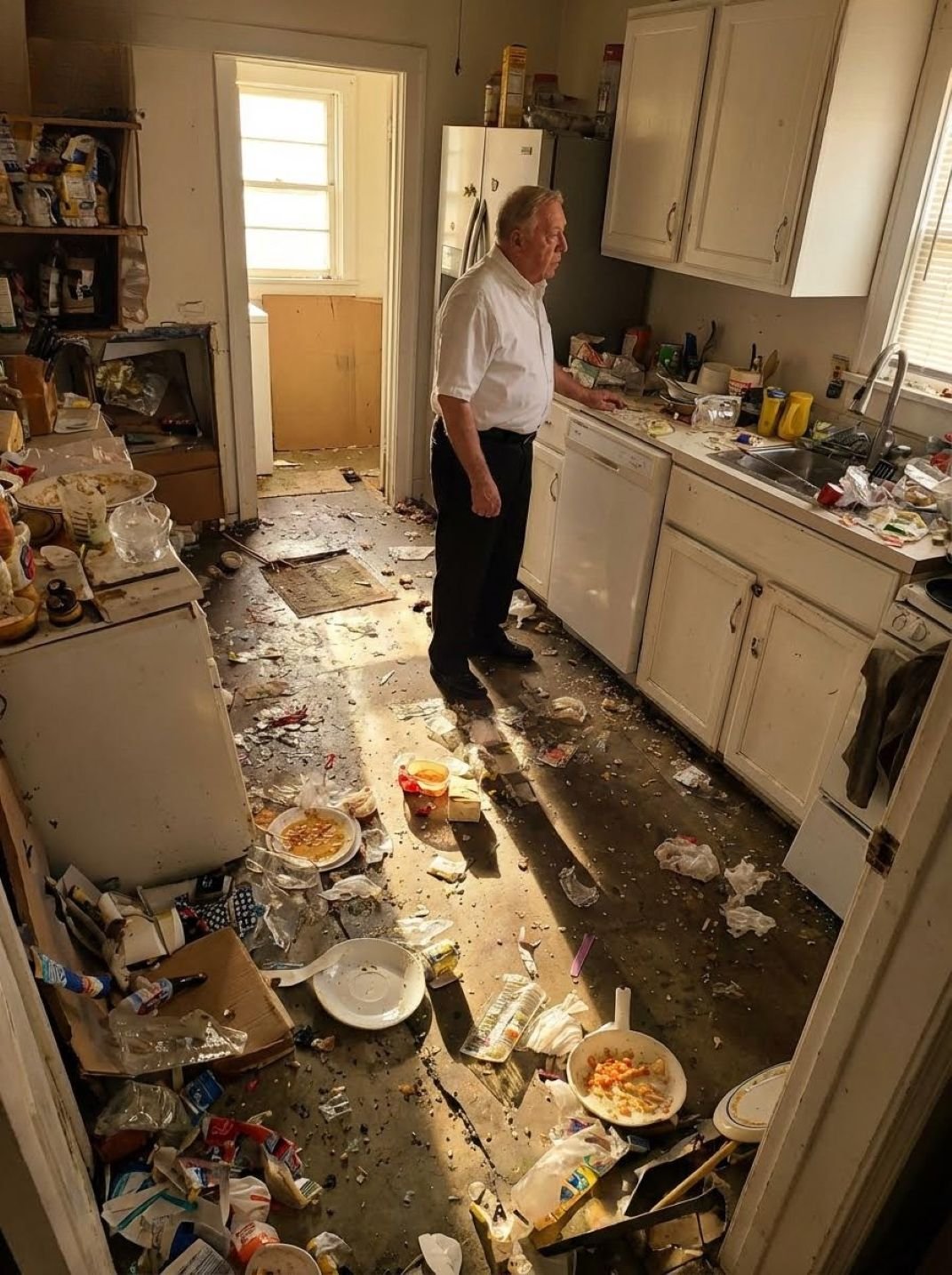 Špinavé nádobí se objevovalo v dřezu, i když jsem ho právě umyla — naskládané, ne zapomenuté, jako výzva. Blátivé stopy se táhly po právě vytřených podlahách. Vánoční ozdoby se tajemně převracely nebo byly „náhodně“ shazovány, vždy, když manžel nebyl doma.