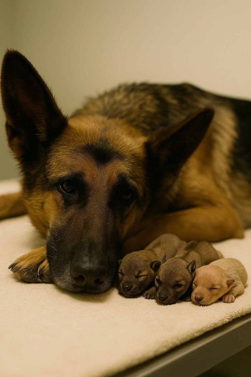 „Nejsi sama. Jsem s tebou.“ První štěně se narodilo pomalu. Pak druhé. Bylo malé, tmavé, s mírně protáhlými čenichy a silnými předními tlapkami – neobvyklé, ale živé.